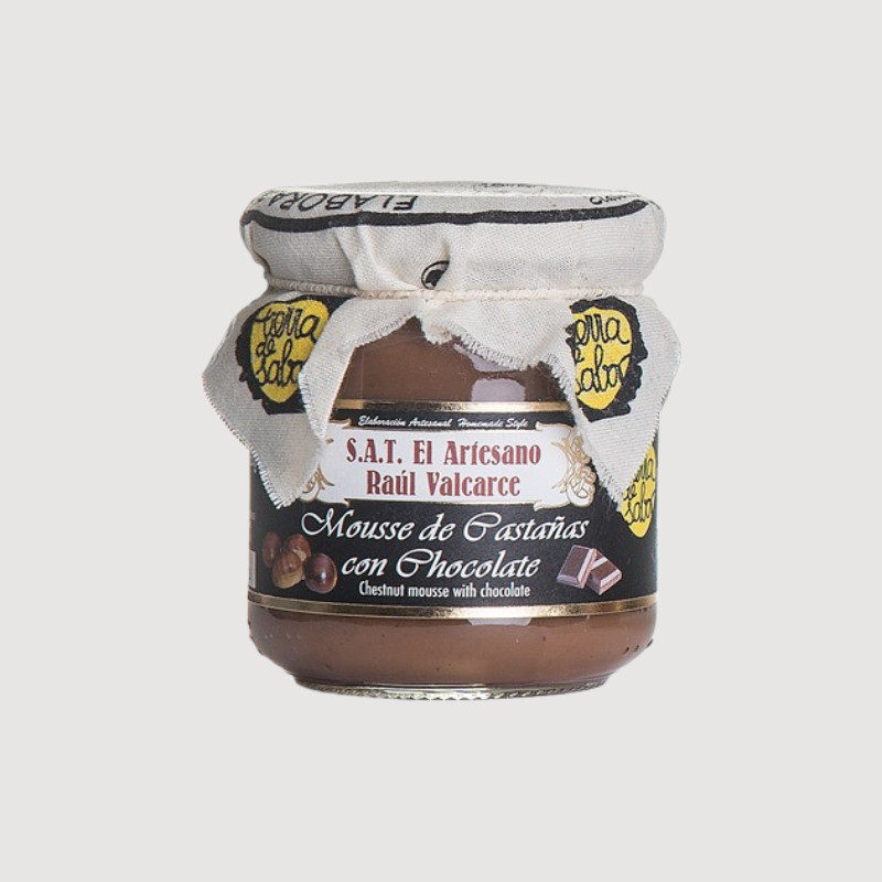 Mousse de castañas procedentes de la agricultura de la comarca del Bierzo con chocolate