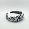 Diadema adornada con una aplicación de tachuelas de metal dorado sobre un tejido de terciopelo negro