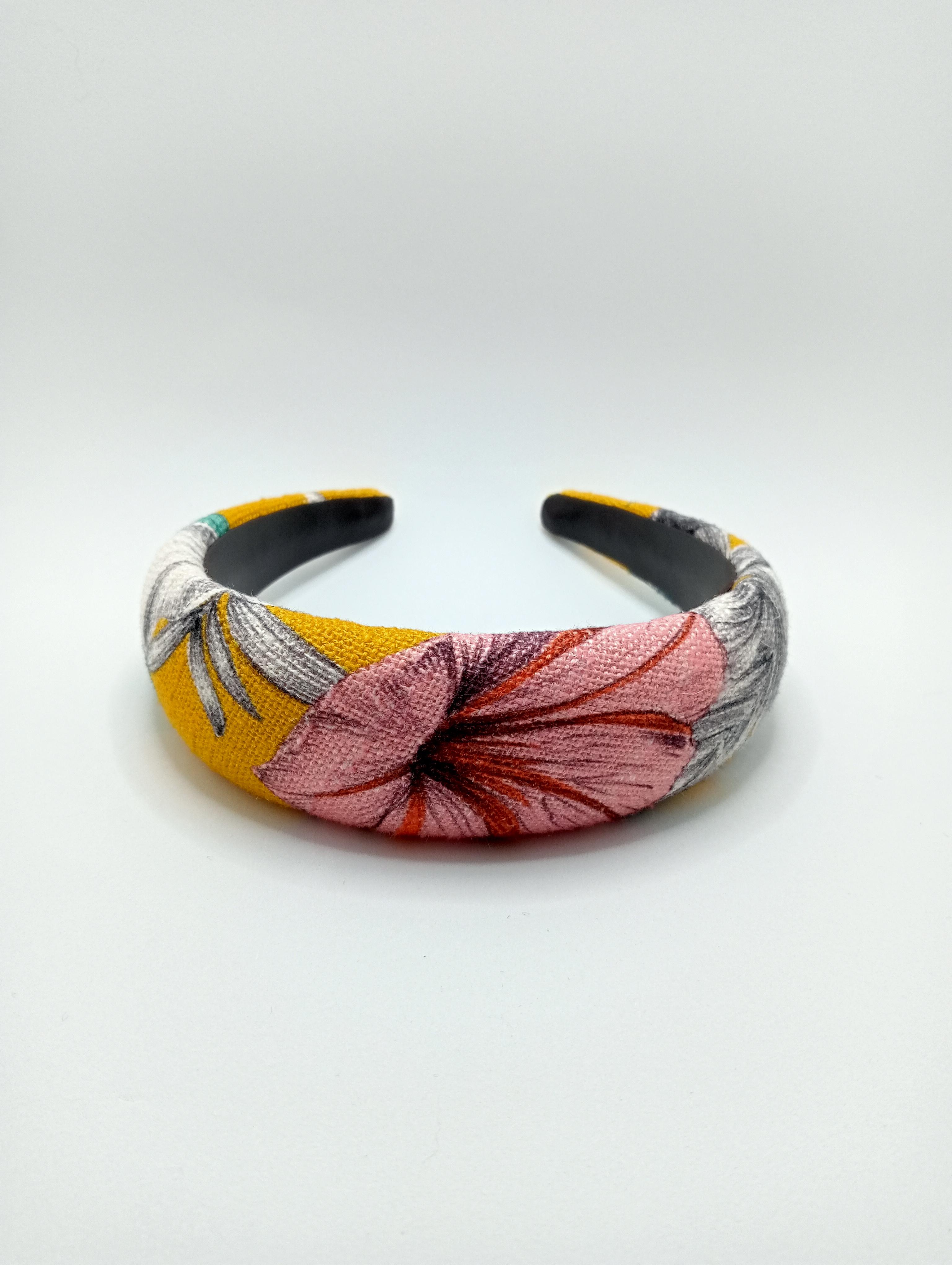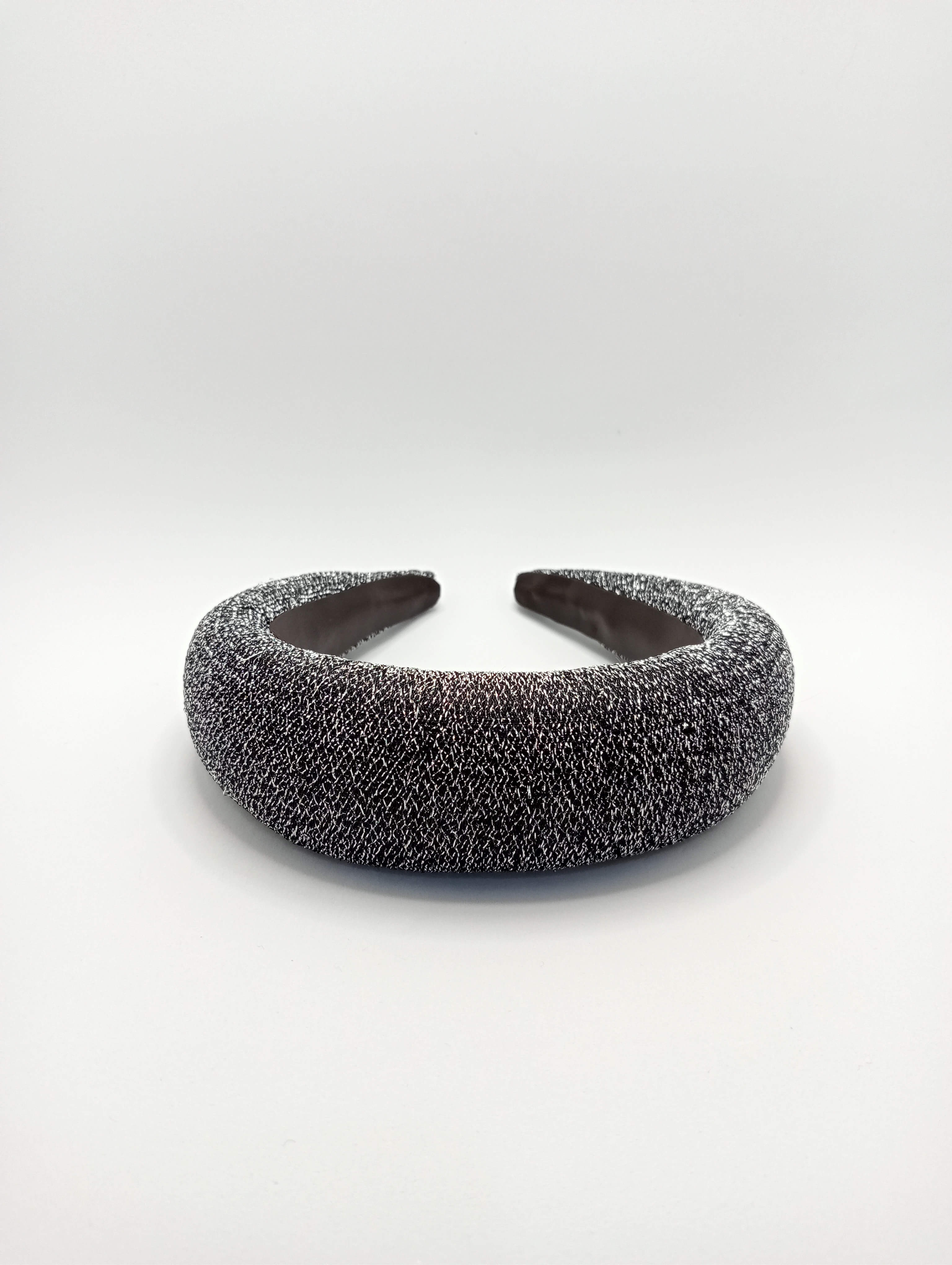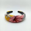 Diadema forrada con una tela plisada de raso de color marrón anaranjado brillante