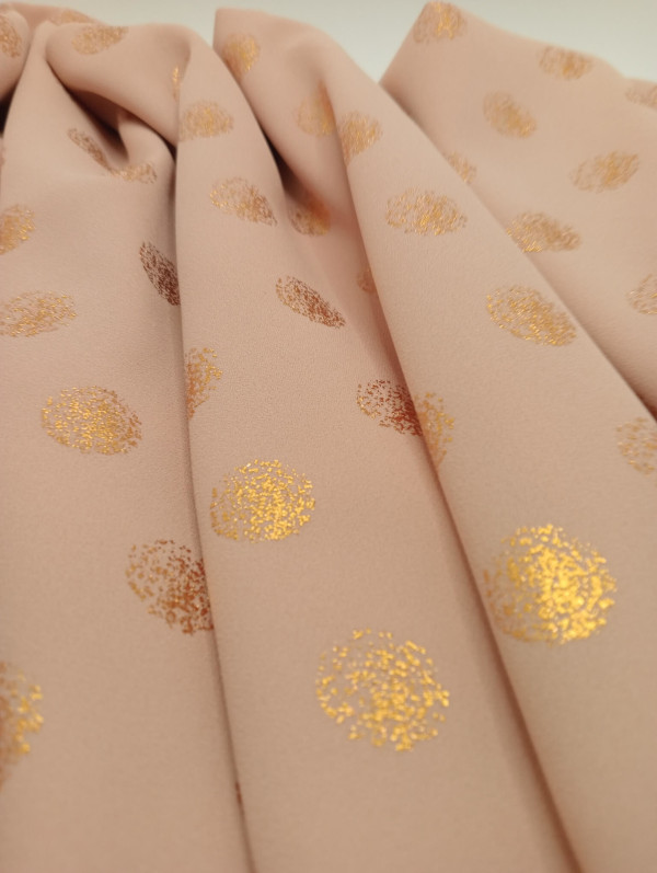 Pañuelo elaborado con una tela crêpe Georgette de color rosa pálido salpicada con lunares dorados