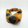 Diadema forrada con una tela de terciopelo de pelo corto naranja mostaza, embellecida por la cara interna con un galón dorado