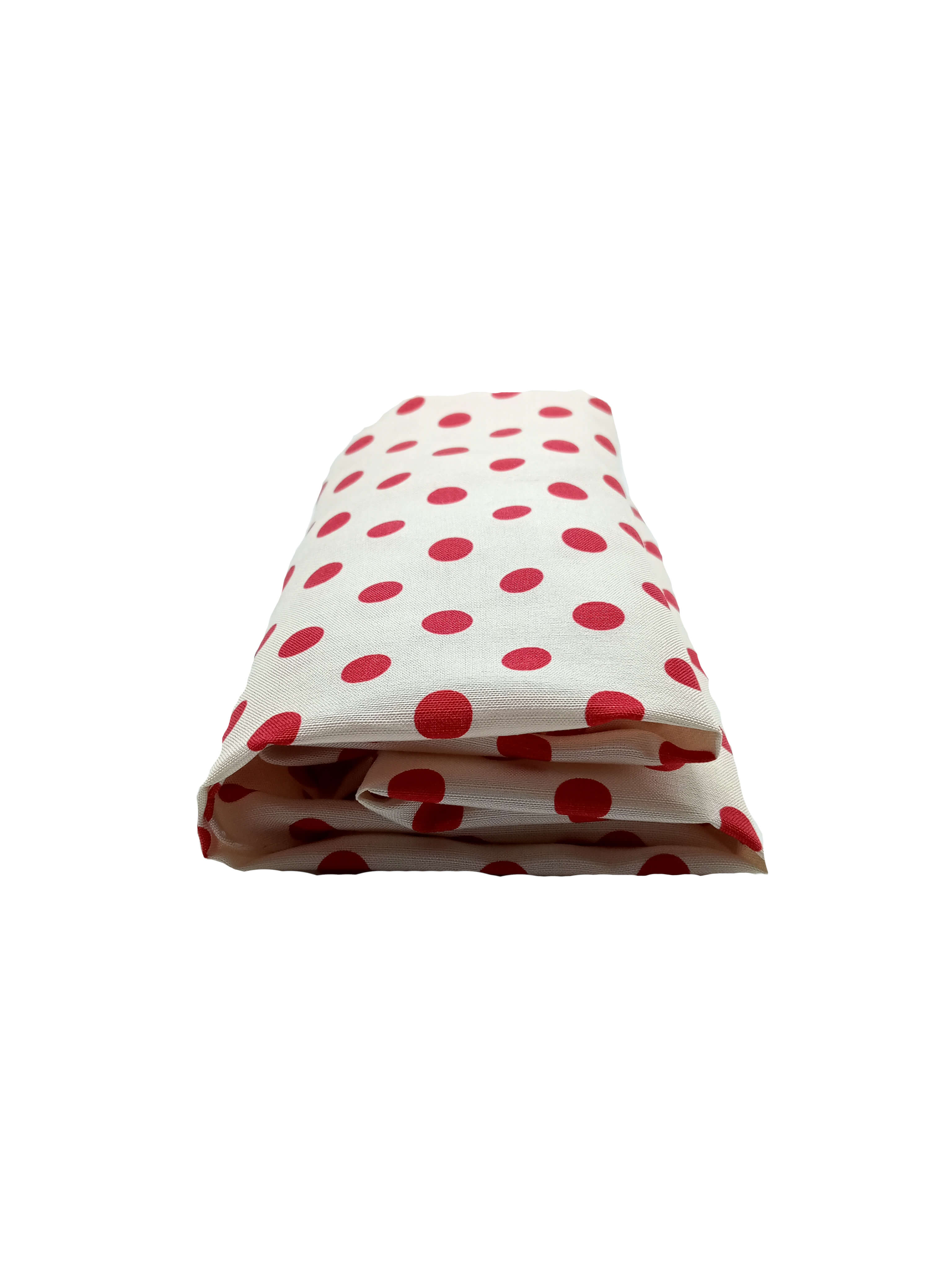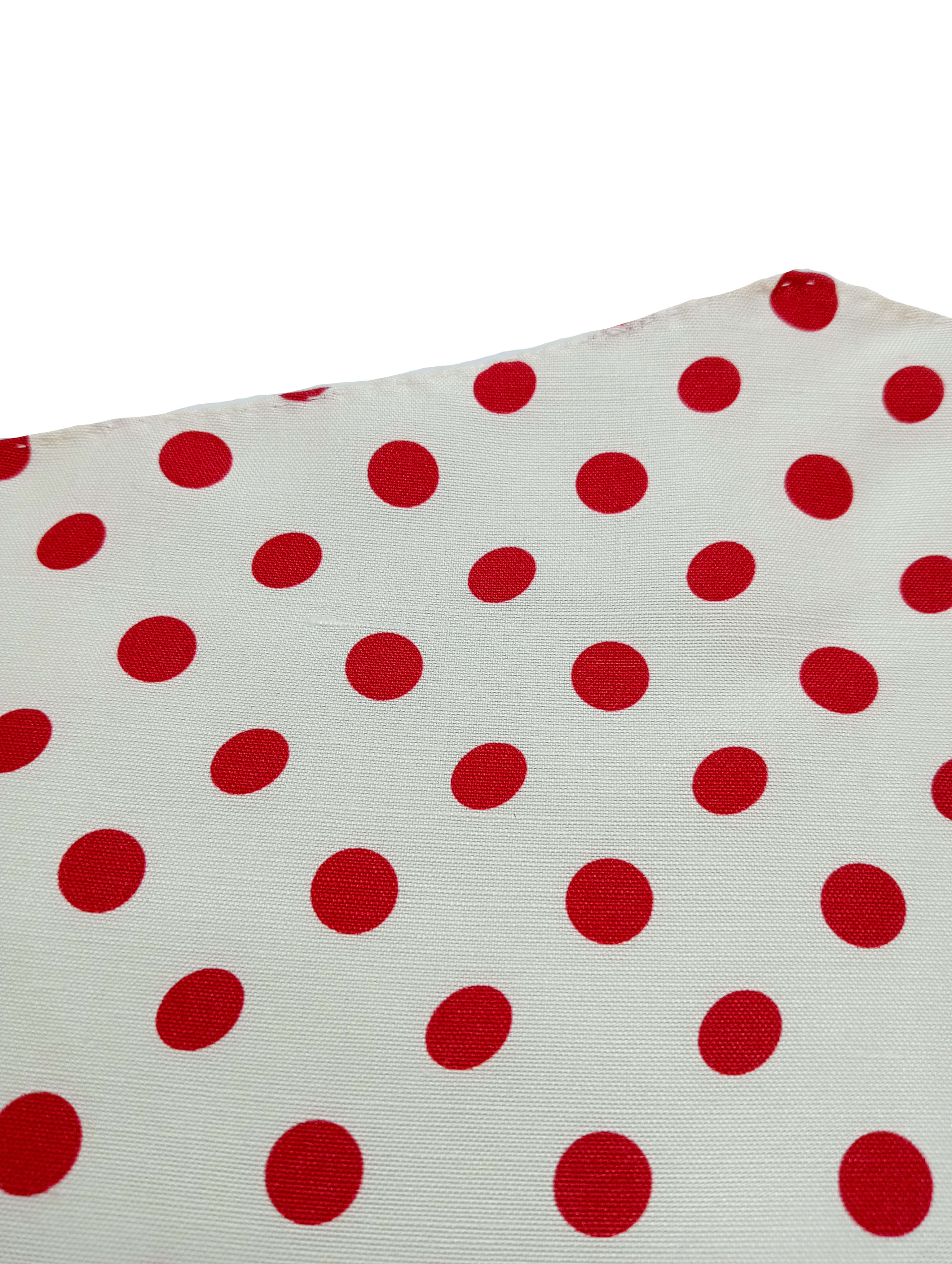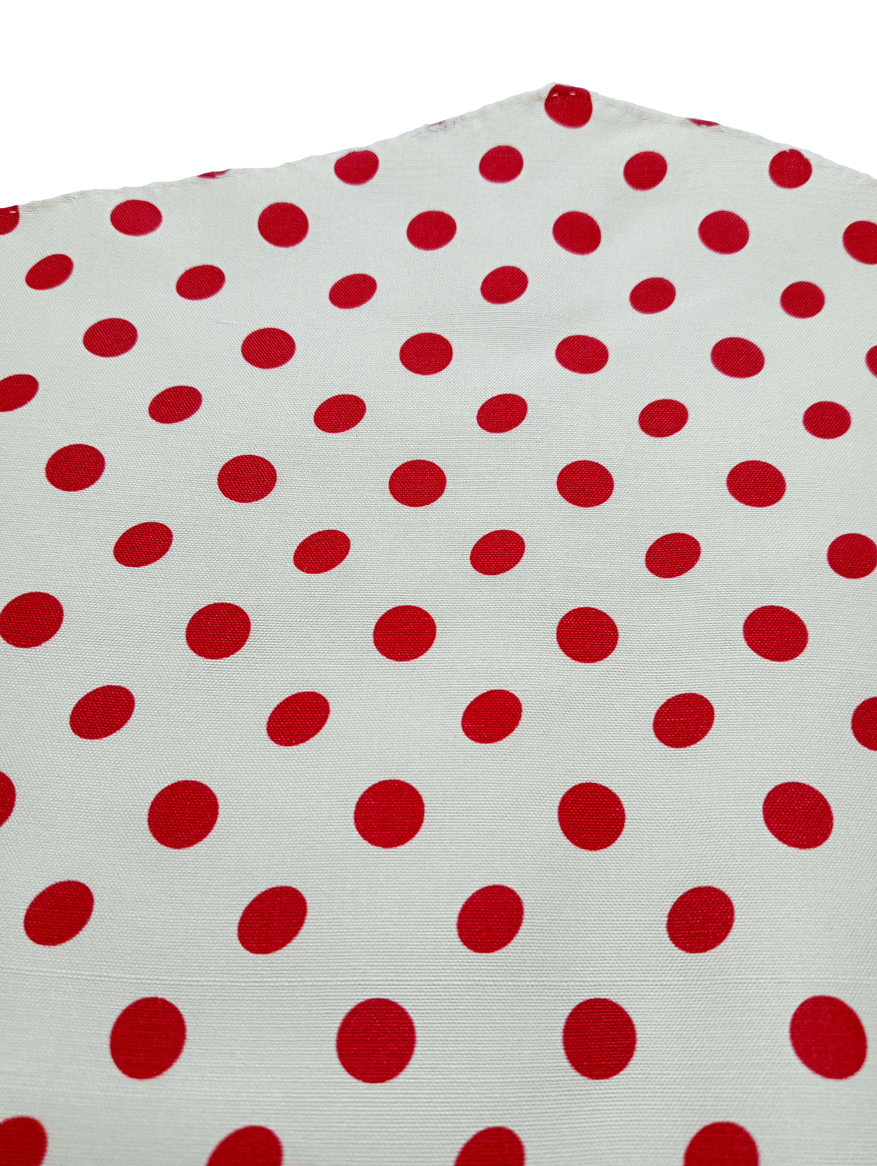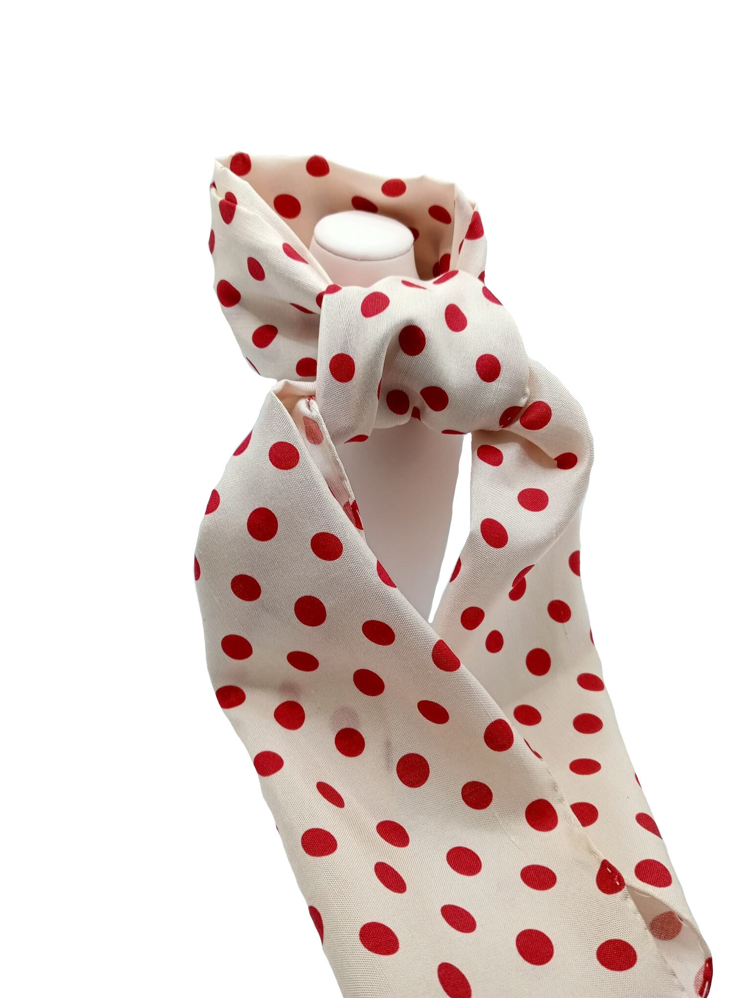 Pañuelo elaborado con una tela de seda shantung de color marfil salpicada con lunares rojos